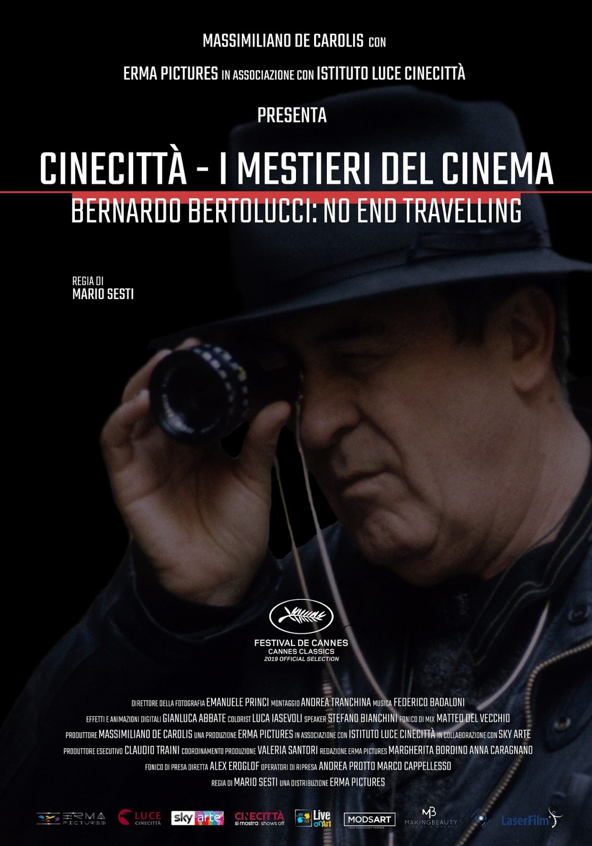 Prodotto da Massimiliano De Carolis per Erma pictures in associazione con Istituto Luce-Cinecittà, in collaborazione con Sky Arte, Cinecittà – I mestieri del cinema. Bernardo Bertolucci: no end travelling sarà trasmesso su Sky Arte il 26 novembre alle 21.15 in occasione della ricorrenza del primo anno dalla scomparsa del regista.